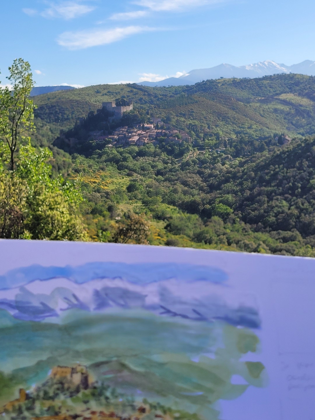 Un atelier autour du carnet de voyage d’une après-midi, pour voir ensemble les bases du croquis in situ dans différents sites et villages des Pyrénées-orientales.
